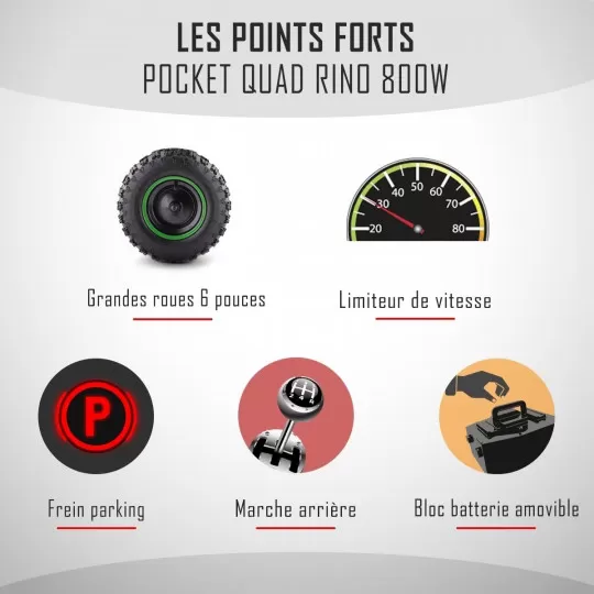 Ce modèle de pocket quad électrique, conçu par Diamon, est parfaitement adapté aux mini rider aspirant à découvrir le monde des quads. Sa taille compacte, sa maniabilité et son confort exceptionnel en font un choix sécuritaire pour le mini rider qu’il y a dans les enfants et rassurant pour les parents. Avec des prix compétitifs, notamment grâce aux promotions offertes par Lebonquad, l’achat d’un pocket quad de haute qualité pour votre enfant est plus abordable.